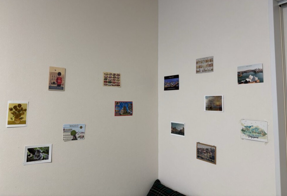海外に行った際は記念としてほぼ必ず購入しているポストカード!私は壁に飾ってインテリアとして楽しんでいます!必ず友達からどうやって賃貸の壁に貼っているのかと質問されるのですが、ダイソーに売っているポスターテープや粘着タックが便利!画鋲などで穴を開けなくても好きな絵を飾れるのでとてもお勧めです!