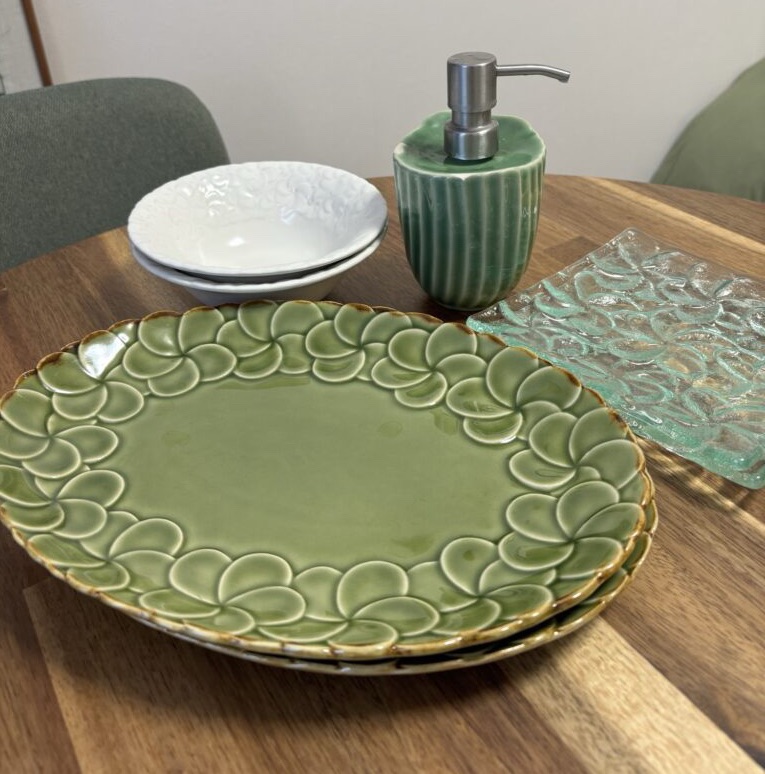 ジェンガラの食器はバリ島の自然(蓮、バナナの葉、プルメリア)をモチーフにした5つ星ホテルでも採用される高品質なアジアモダン陶器!とっても可愛いのに強度が強く実用性もあり、なんと基本的には食洗機や電子レンジにも対応している優れもの!私はジンバランの本店で購入。店員さんが何重にも包装をしてくれたおかげで無事スーツケースで持って帰ることができました!ただ結構重たいので、たくさん購入される場合は重量制限に気をつけてくださいね!