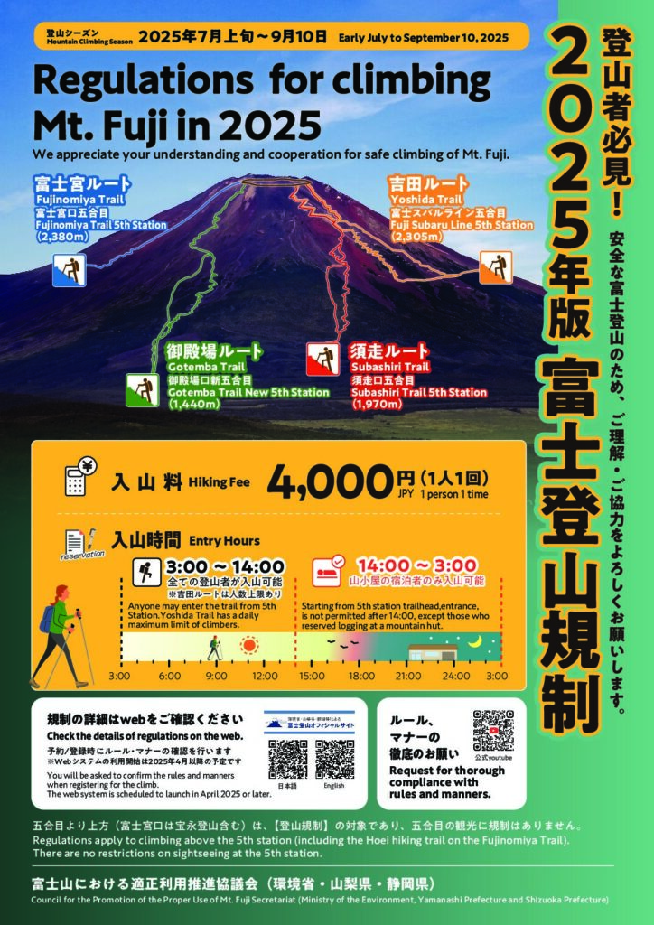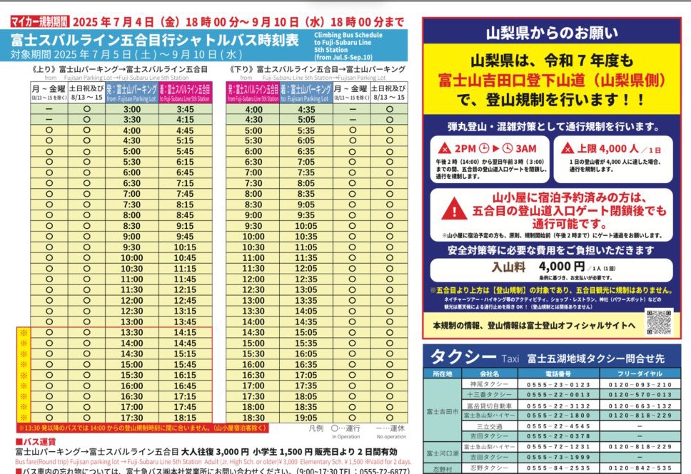 ⚠️登山者は1日4000人まで(山小屋予約済みなら規制中も通行可能)